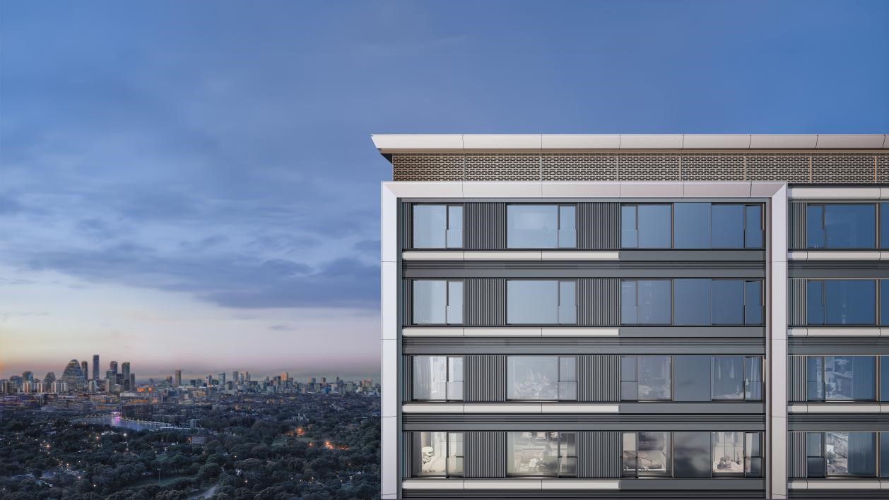 据介绍,三期项目容积率仅1.8,远低于北京市场新入市住区的容积率均值。更值得一提的是,三期南侧楼间距达到了约 66米,而北侧楼间距则达到了约 93 米,让业主在绿意盎然的东坝地区,尽情欣赏公园河景。项目总共规划有3栋252 套房源。其中,外立面采用纵向三段式设计,其中顶部如机翼的挑檐,以香槟金色穿孔铝板与灯带交织,营造出浓郁的艺术气息。