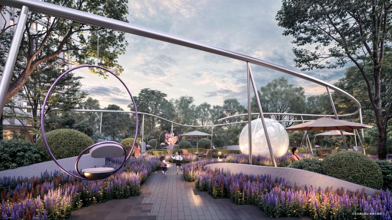 园林景观方面,三栋18层的住宅楼以一字型布局坐落在广阔的绿化空间中,每栋楼的前后都围绕着宽广的景观区域。园林设计以“风谷之境”为核心理念,创造了一系列充满动感与活力的主题景观场景。