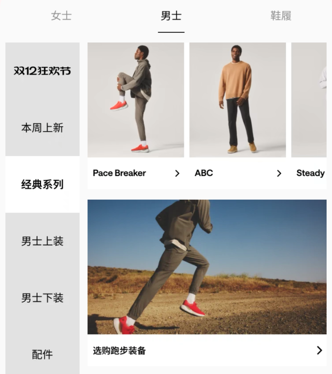 今年4月,lululemon首席执行官Calvin McDonald表示,“在‘power of three×2’计划实施两年后,男装收入的复合年增长率达21%,提前实现了目标。”2024财年上半年,lululemon男装业务净收入同比增速在15%、11%,女装业务则为减缓至10%、6%,差距进一步拉大。