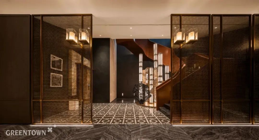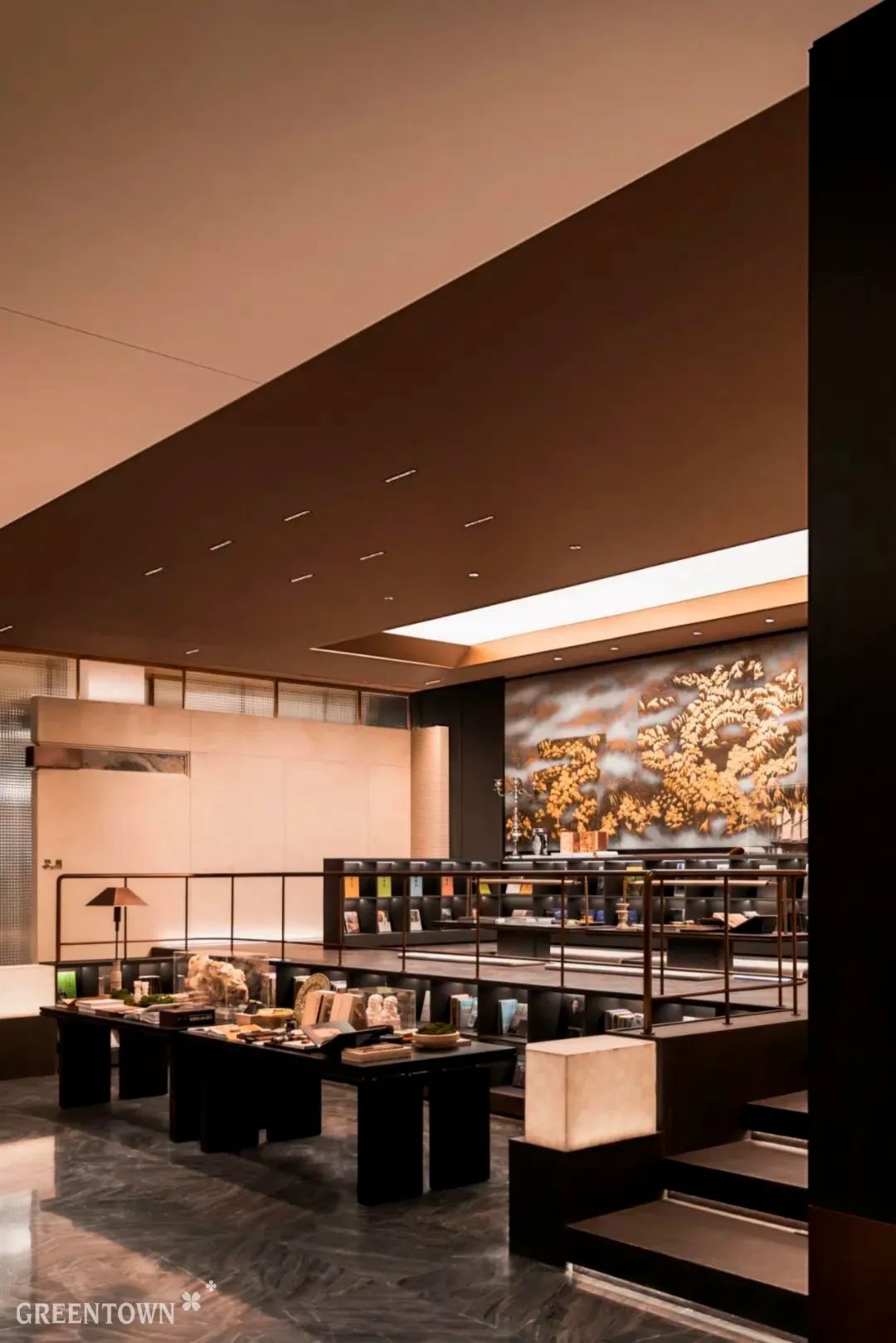 在余姚臻园,约1000㎡高端地下空间,以河姆渡玉璜为设计灵感,取其形,取其意,取其韵,在功能与美学上均实现了对传统会所项目的超越与创新,打造“弈、阅、逸、尊、赏、酣、趣、静、礼”九大定制空间,涵盖臻宝书屋、室内高尔夫、雪茄红酒品鉴等高端圈层服务。