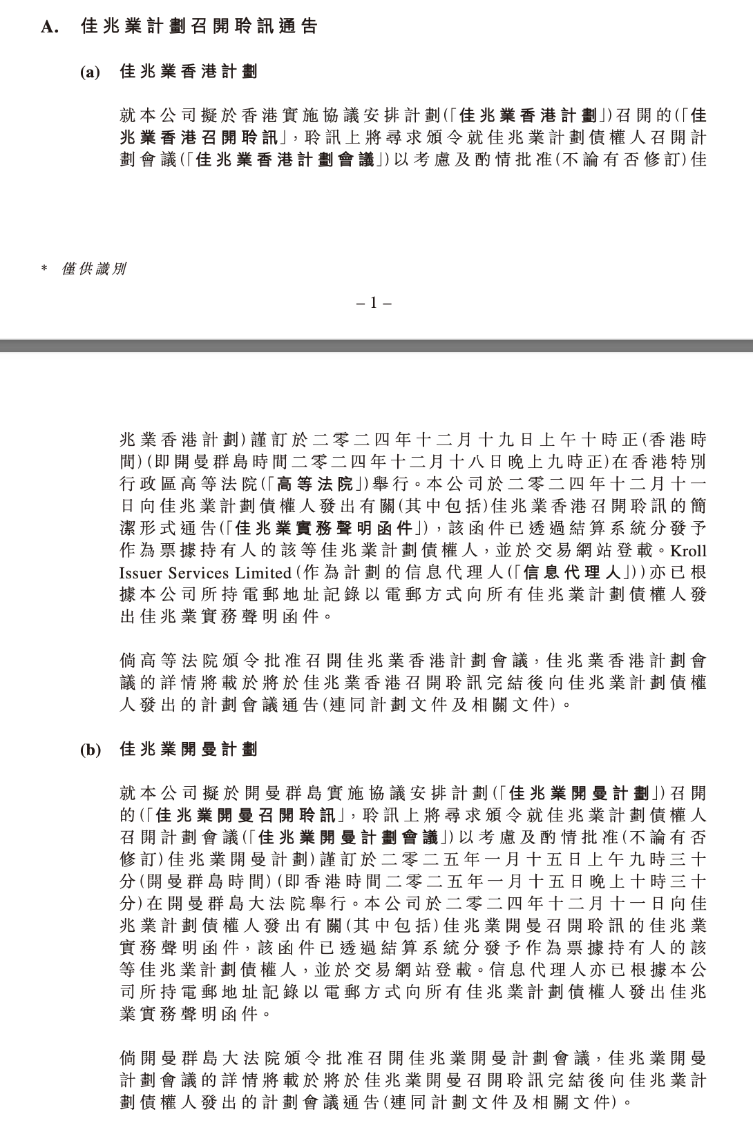 佳兆业披露境外债重组进展:香港计划12月19日聆讯