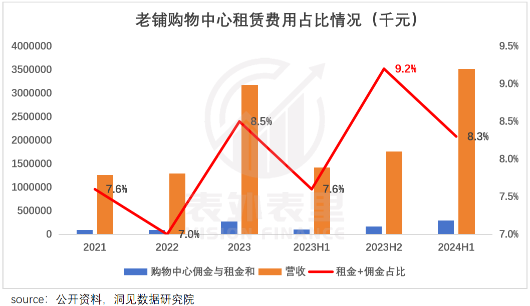 到了蹭流量的老铺们,就秒变“公事公办脸”,卡流程、卡条件不说,优惠更是免谈,老铺付给商场的钱占比不仅更高,甚至还在涨,从2021年的7.6%升到了2023H2的9.2%。