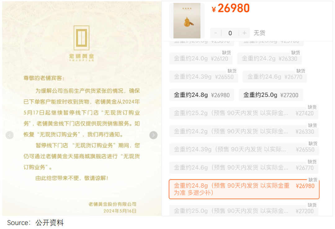 然而,老铺的生产线都干到冒烟了,缺货问题仍然棘手,花丝葫芦、十字金刚杵等常青款一度连预订都订不到。