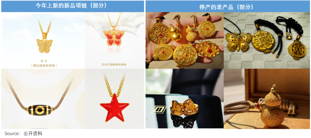 基于此,其开始停产部分工艺复杂的高势能产品,新产品设计也趋于简单化,如今年的新品项链,鲜少花丝等复杂的古法工艺。