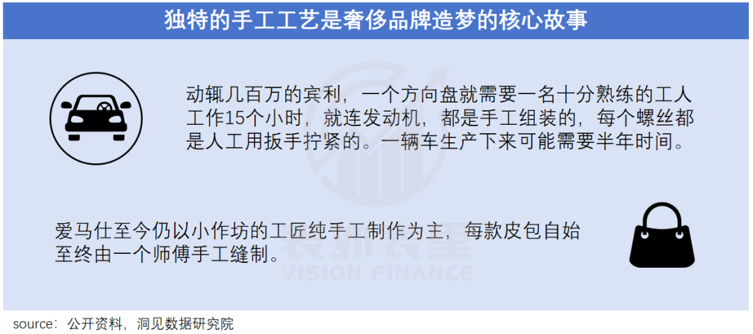 毕竟大家对奢侈品的期待,就是“手工、工匠、艺术”带来的稀缺性和高贵感。