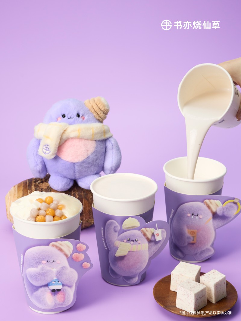 据书亦烧仙草官微介绍,本次新推出的丝绒芋泥产品,精选优质芋头高温蒸煮,再捣碎研磨,保留了芋头最纯粹的香甜与软糯的同时,搭配纯牛奶搅打,让二者完美融合形成丝绒状态,既保留了芋泥的醇厚口感,,又增添了奶茶的丝滑顺畅。