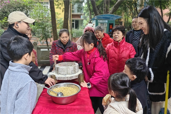 “自己磨的豆花就是不一样,别有一番风味。”在重庆天元道“邻里豆花节”的活动现场,业主们兴致勃勃地体验着亲手磨制豆花的乐趣。金科服务精心将这一传统活动带到了重庆天元道、时代中心、中华坊等多个小区。