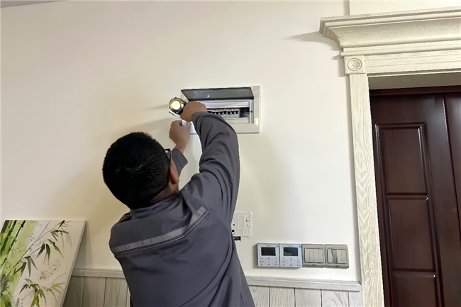 (图:金科服务的工作人员正在检查业主家线路)