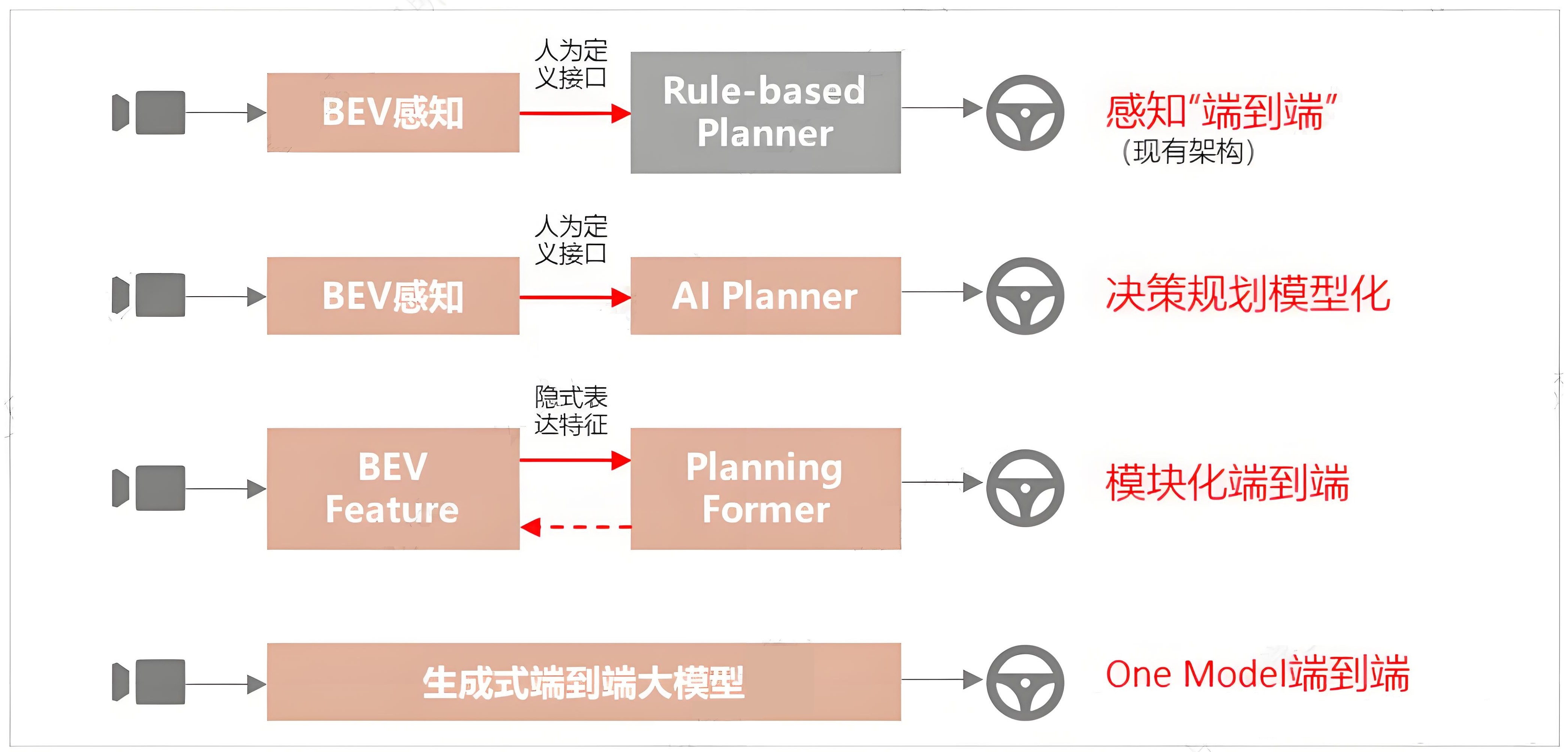在过去几年的时间里,随着Transformer+BEV+OCC的问世,分立级联的感知模块已经慢慢完成了到端到端感知的切换,自2023年下半年以来这波端到端狂潮引发的“从人工逻辑代码到数据驱动”的转变,其实主要体现在决策和规划层面。