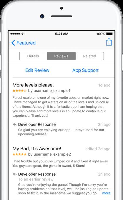 随着新功能的推出,苹果提供了一些关于开发者如何回复评论的建议: