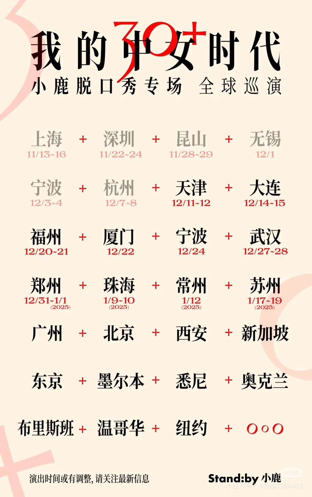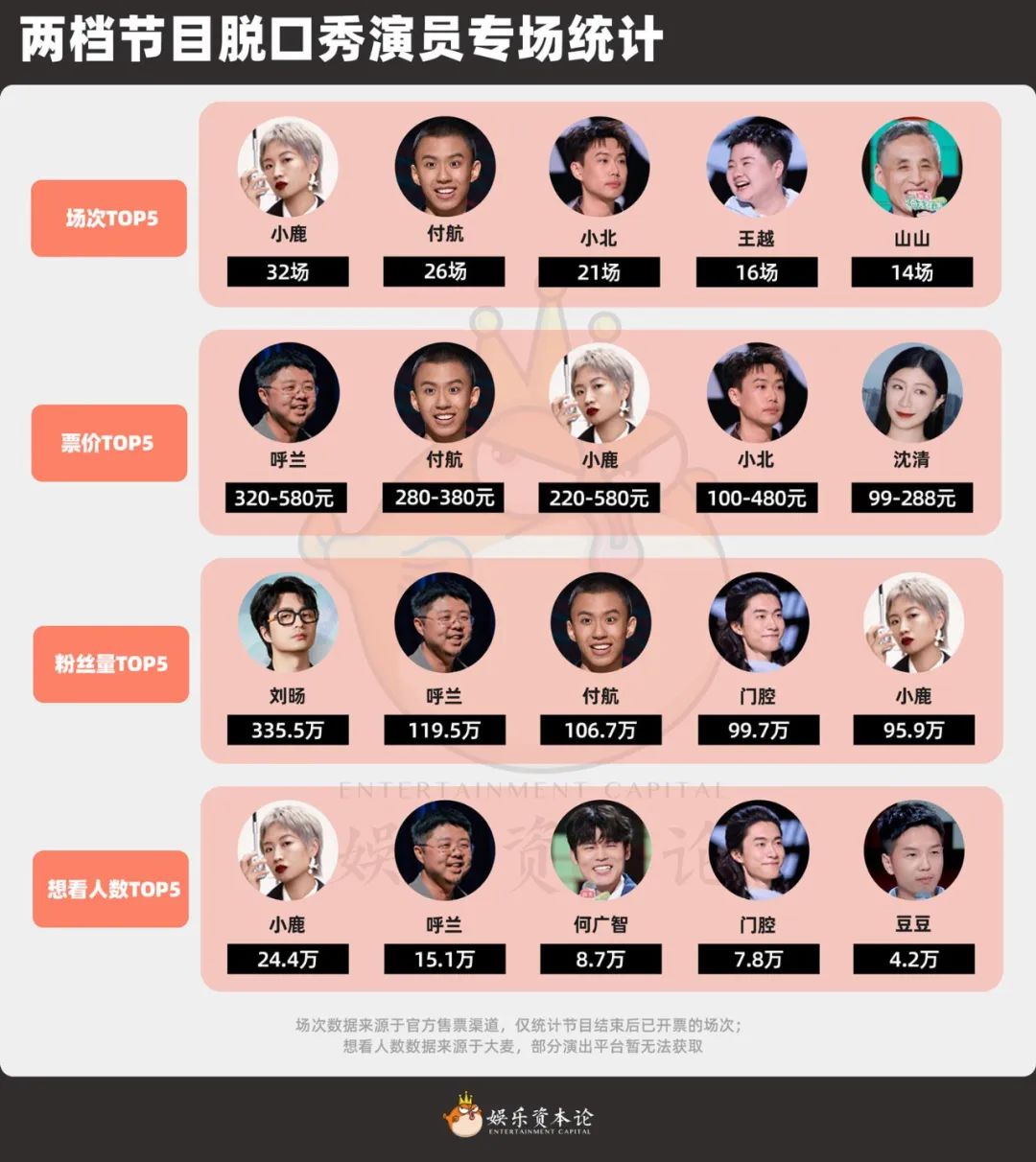 小鹿、付航等线下脱口秀老将成为新晋“顶流”,小鹿开启全球巡演,官宣了20+演出城市,目前总票房已经破1000万。
