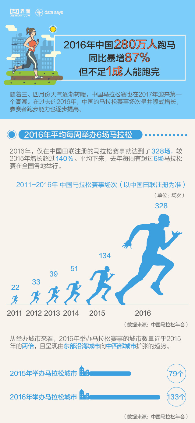 【图解】2016年中国280万人跑马 同比暴增87% 但不足一成人能跑完