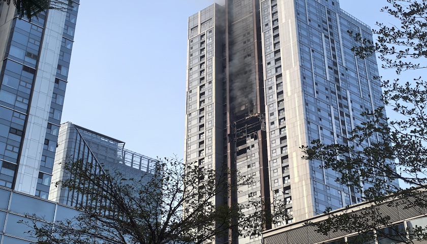秦涛回忆,当时没收到通知,消防警报也没响。他往窗外看,发现楼下很多人都在看他住的这栋楼。他意识到出事了,立即打开房门,烟雾扑面而来,同时伴随着一股焦味。
