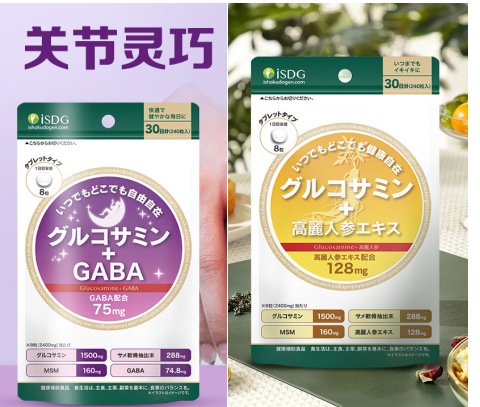 iSDG 氨糖 + GABA 营养片则是高含量 1500mg 氨糖与硫酸软骨素、非变性的 II 型胶原蛋白三大黄金组合,从根源预防、减轻、缓解关节疼痛,MSM 及 GABA 双路径快速缓痛。这一产品适合关节疼痛、睡眠质量差的人群。