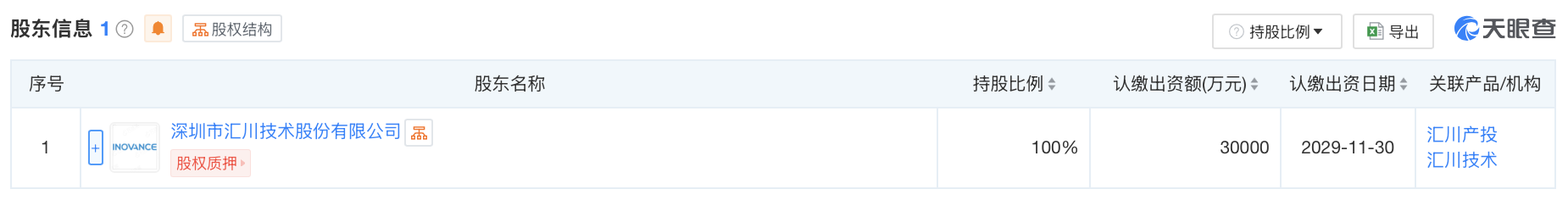 天眼查APP显示,近日,北京汇川技术有限公司成立,法定代表人为郭立鹏,注册资本3亿元,经营范围包含:人工智能理论与算法软件开发;人工智能基础资源与技术平台;人工智能通用应用系统;人工智能应用软件开发等。天眼查股权穿透显示,该公司由汇川技术全资持股。
