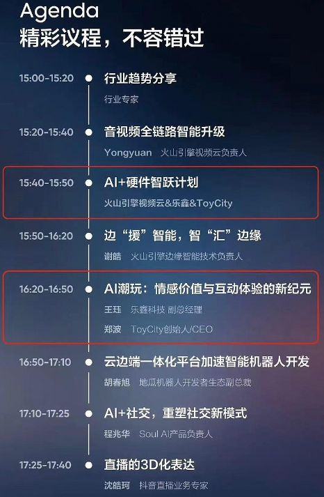 在AI大模型硬件的应用场景中,选中玩具作为爆发的切入点可能并不是偶然的。在此次火山引擎大会的硬件模型专场,出现的主要硬件终端依次为手机、玩具、汽车、智能硬件和PC。