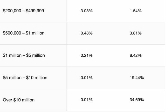 年收入在20万至50万之间的被查税概率是20万以下的人群的三倍!
