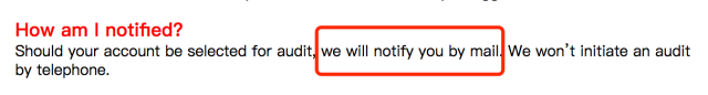据IRS官网介绍,IRS会以邮件形式告知纳税人被列入查税名单。在审计之前,国税局会通知补交的材料,如果期间有任何变化,国税局也会及时更新细节并详细解释。