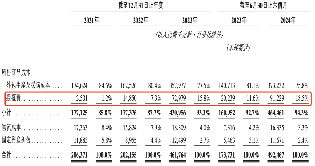 但是,走爆款IP授权的路子,也并非一劳永逸。一方面因为这些IP并非独家授权,很容易出现“大家到处都可以买到,认IP不认布鲁可”的现象,另一方面,企业能否持续获得授权,存在不确定性,IP授权费用在整体成本中的比重逐年上升,到今年年中达18.5%。