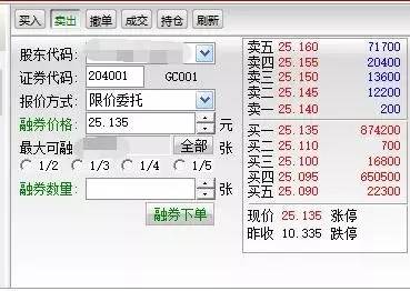 假如你在今天卖出204001,我们假设你卖了10万块钱,交易价格是今天中午的收盘价25.135%。