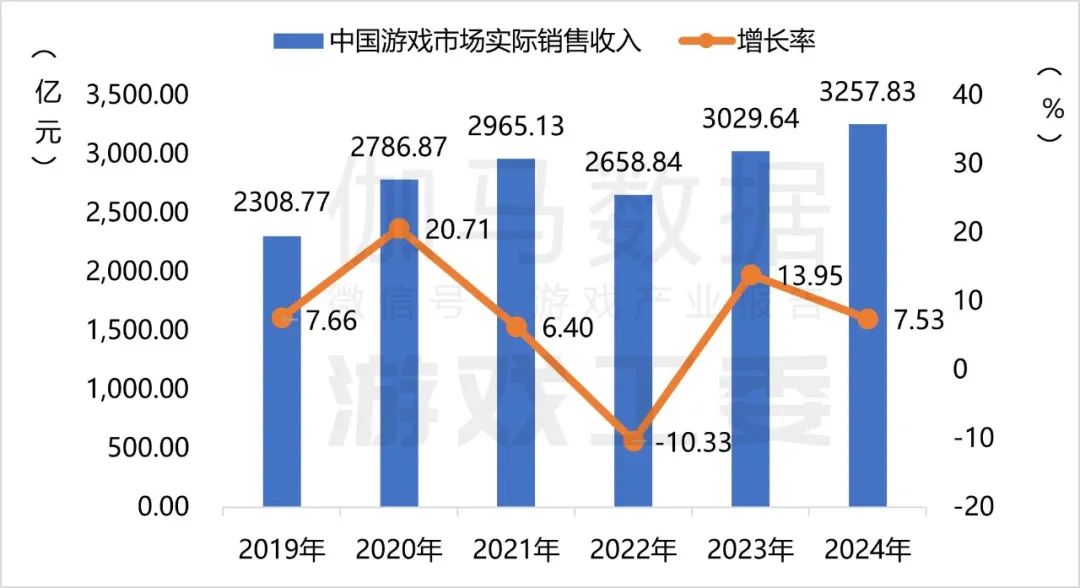 2024年,国内游戏市场实际销售收入3257.83亿元,同比增长7.53%,再创新高。游戏用户规模6.74亿人,同比增长0.94%,亦为历史新高点。市场收入与用户规模同步增长并再创新高的主要原因:一是游戏新品数量有所增加,且出现爆款大作;二是多款长青产品运营平稳;三是小游戏表现抢眼,增长势头强劲;四是多端发行与云游戏使用户消费更为便利。