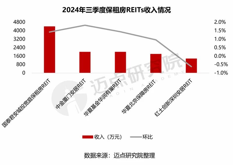 近期,公募REITs披露了三季度财报,整体来看,多数REITs经营仍承压,其中消费类REITs和保租房类REITs表现最为稳健。5单保租房REITs合计实现1.16亿元的营业收入,同比增长1%,环比增长63%;合计实现0.85亿元的可供分配资金,同比增长2%,环比增长52%。