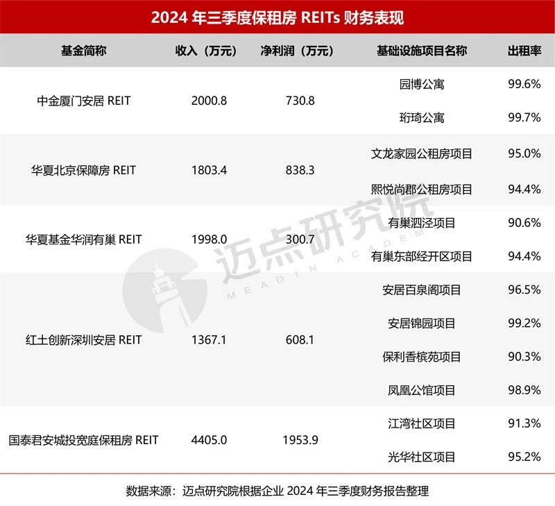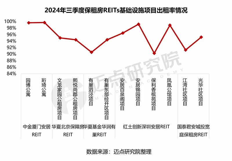 从市场端来看,住房租赁企业整体发展稳健,营收、净利润、管理规模和开业规模等指标稳步增长;但经营层面仍承压,5单保租房REITs共12个基础设施项目,平均出租率较第一、二季度出现下滑。