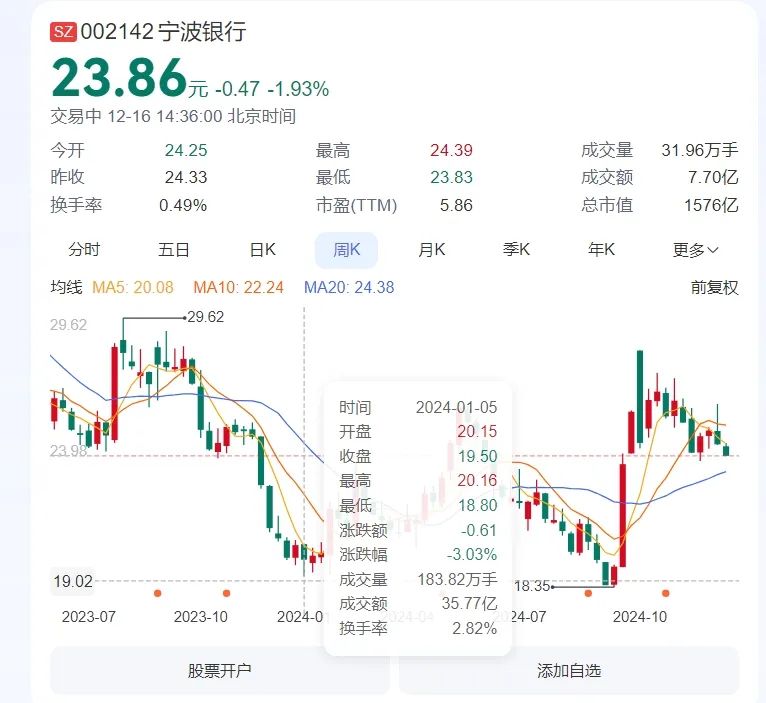 2024年年初至11月底期间,雅戈尔重仓股宁波银行与中信股份股价大涨。不考虑分红,仅仅考虑宁波银行与中信股份上涨幅度与雅戈尔持股数,雅戈尔就有着47亿元浮盈。