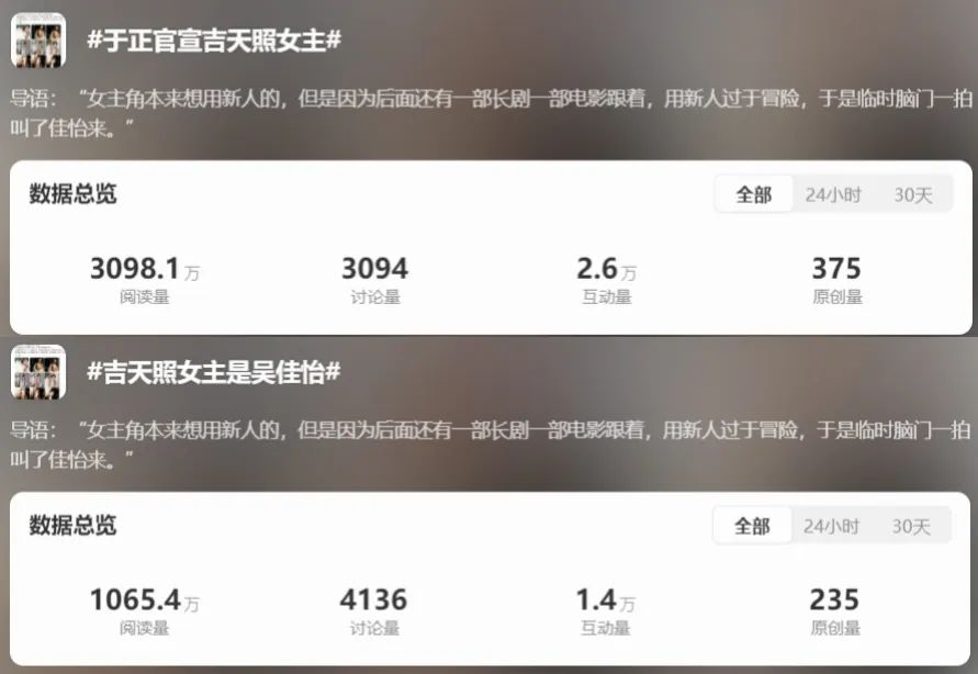于正微博发得相当神乎,真假不得而知,但宣传目的确实达到了。两个相关话题登上热搜,阅读量合计超4100万。