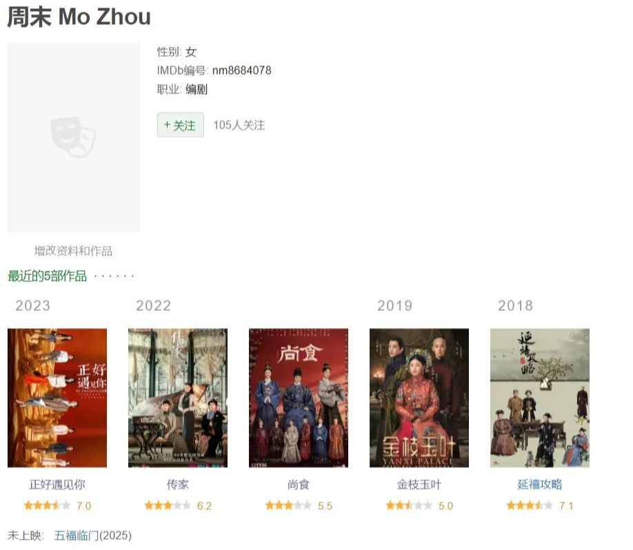 周末的娱乐圈的曝光度不高,豆瓣显示性别为女,共有7部影视作品,没有其他信息。