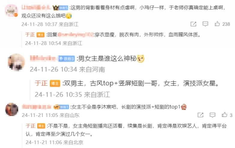 自从《吉天照》开拍,于正对主演一藏再藏。尽管接连发了不少微博,但都没有直接公布主演信息,只透露女主演过女一,男主是竖屏短剧演员TOP1。