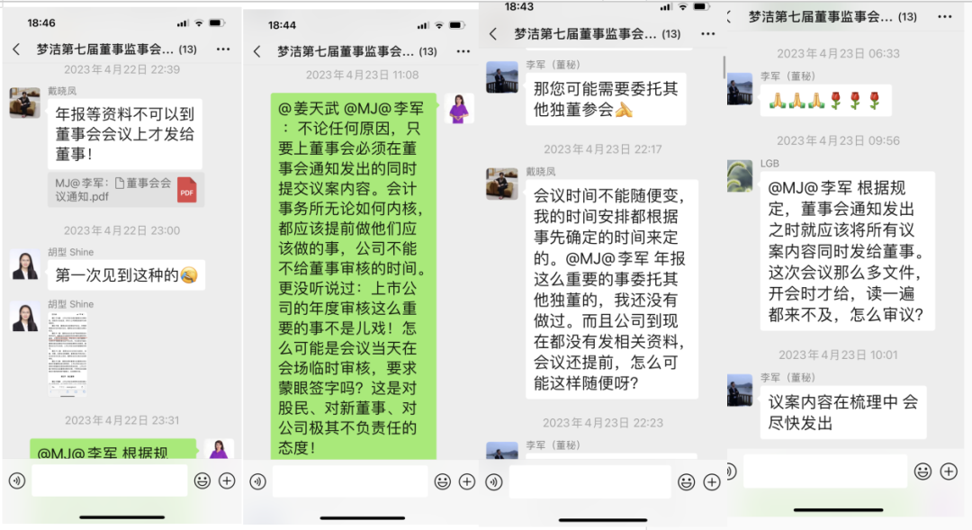 4月20日,第七届董事会第一次会议的议案及现场投影照片都是按照上述内容显示,但是会后董秘李军在给董事签署的决议上,删去了议案中过渡期的时间安排和对管理层约限制性条款。陈洁及时任董事刘彦茗、罗庚宝提出异议,要求补充议案全部内容再签字,但董秘李军将三位董事的投票视为弃权并改变决议公告。