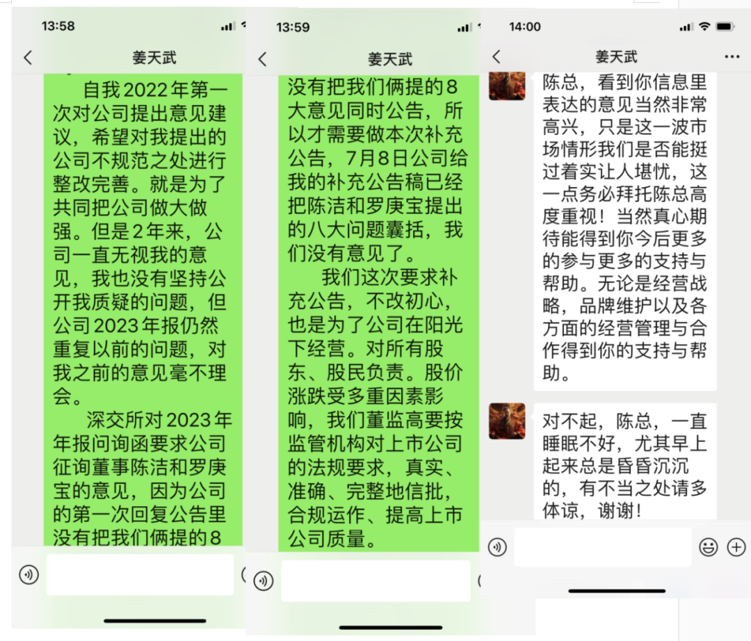 董事陈洁反复提到:“对公司2022年开始至今的财报真实、准确、完整性存疑。质疑管理层涉嫌调节财务数据、占用资金、掏空公司,希望监管部门进行详细调查。
