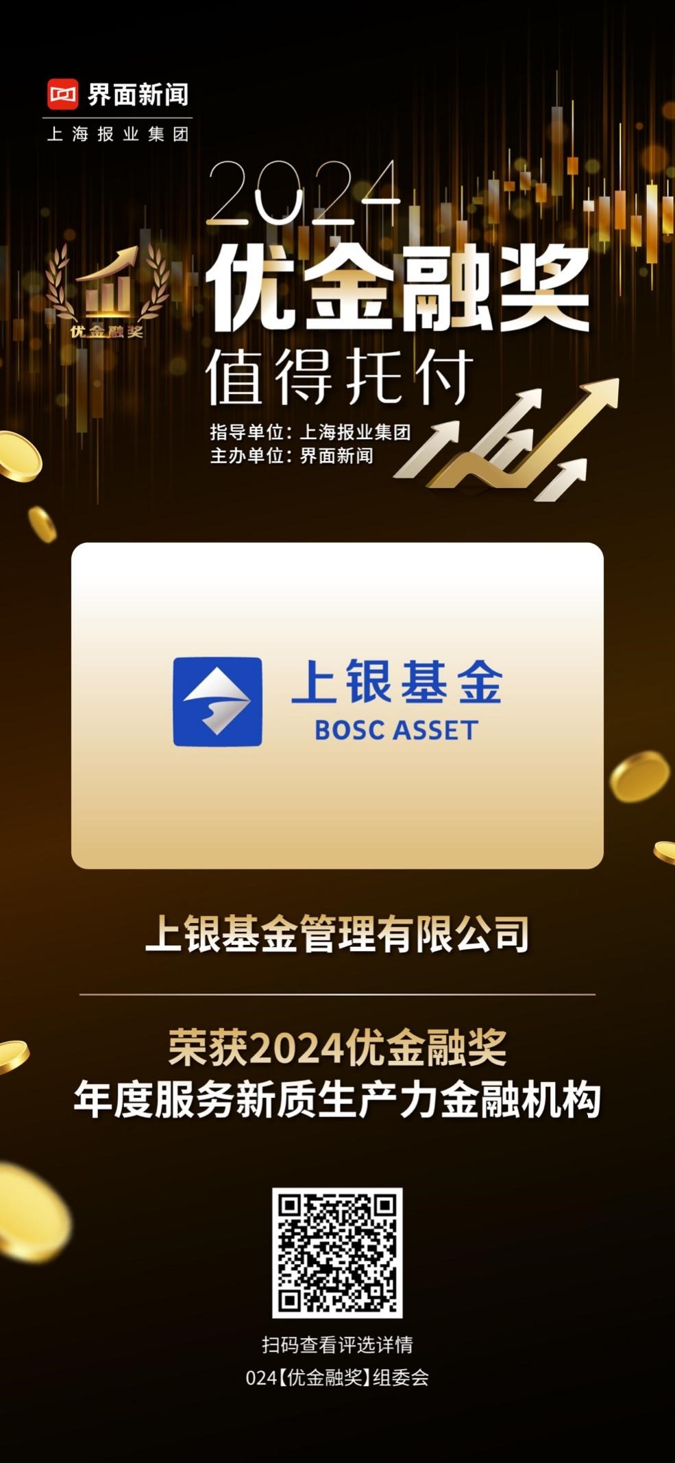 其中,上银基金管理有限公司荣获2024【优金融奖】年度服务新质生产力金融机构。