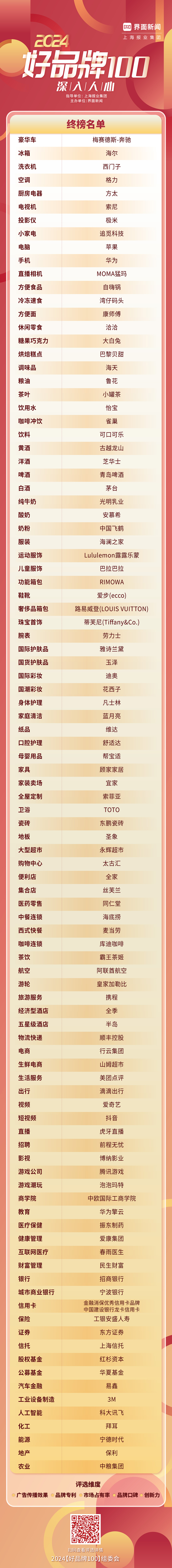 以下是今年荣登主榜的品牌名单(排序不分先后,每个行业仅一个品牌上榜):