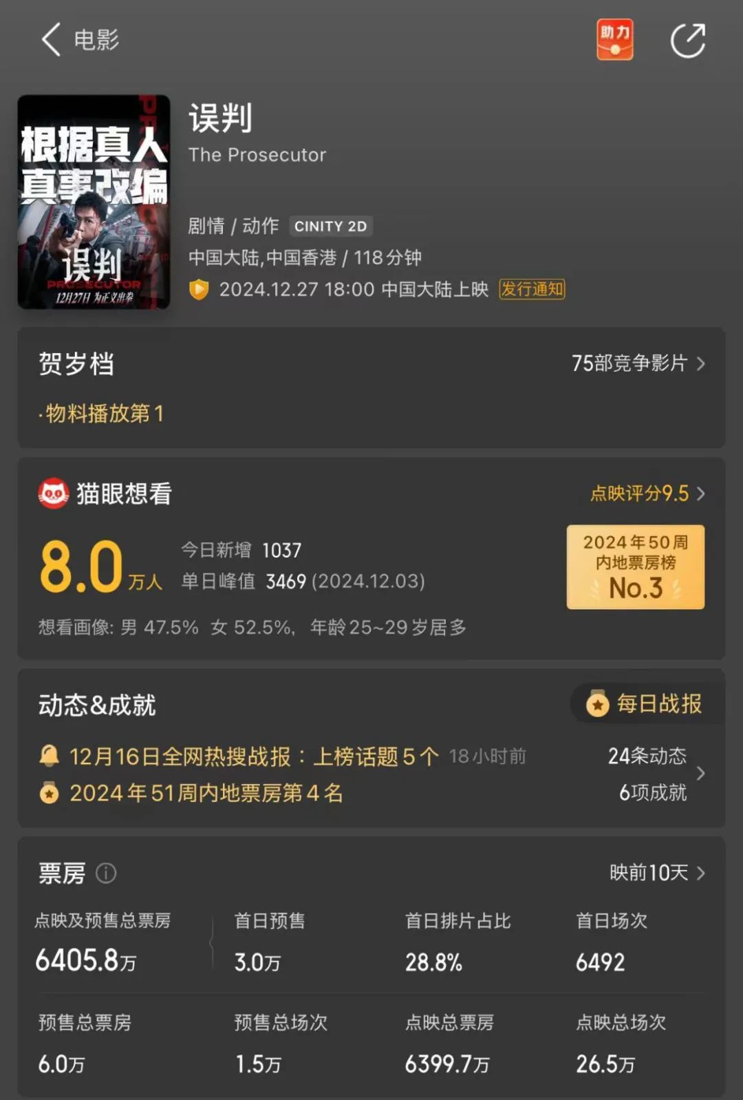 后营销时代,以映代宣这种策略几乎适用于任何档期。尤其是《误判》这种带有港片不确定性标签,又有不少强劲同期对手的项目来说,点映是抢跑,也是它的生路。