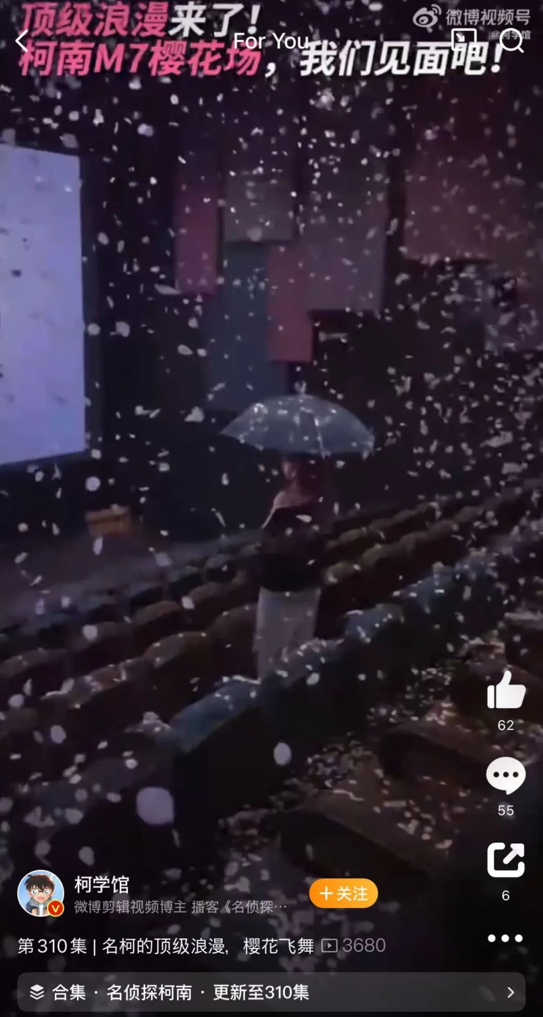 近两年日本动画电影内地营销渐入佳境,尤其《名侦探柯南:迷宫的十字路口》还有成熟的日片引进方路画影业操盘,在同期项目还未有大动作之时,已经早早开始布局跨年特殊场“樱花飞舞场”。