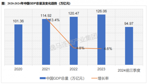 国家统计局数据显示,2023年国内生产总值(GDP)为126.06万亿元,同比增长4.6%。进入2024年以来,国民经济运行总体平稳。2024年前三季度GDP达到了94.97万亿元。从三大需求对GDP增长的拉动贡献率来看,消费已经成为我国经济增长的核心动力。