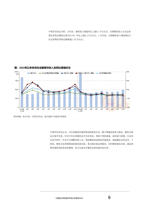 中国烹饪协会认为,10月份随着存量政策加快落实以及一揽子增量政策加力推出,餐饮市场运行稳中有进。针对今年以来餐饮业开关店率高、利润下滑的现象,政府部门重视,行业协会发声呼吁,外卖平台调整营销工具,帮助餐饮商家降低营销成本,鼓励餐饮良性竞争。下阶段,餐饮企业需围绕高质量发展目标,重点抓好菜品和服务,回归餐饮服务本质,满足消费者现阶段的需求和期望,努力完成全年餐饮市场发展目标任务。