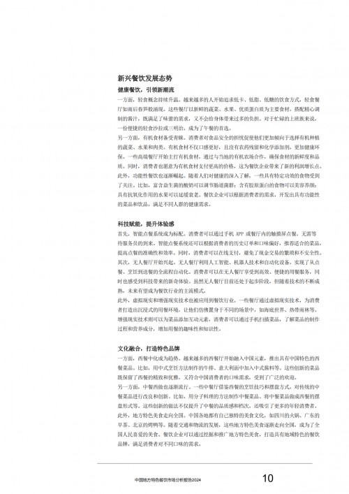 此外,地方特色美食走向全国。中国各地都有自己独特的美食文化,如四川的火锅、广东的早茶、北京的烤鸭等。随着交通和物流的发展,这些地方特色美食逐渐走向全国,成为了全国人民喜爱的美食。餐饮企业可以通过挖掘和推广地方特色美食,打造具有地域特色的餐饮品牌,满足消费者对不同口味的需求。
