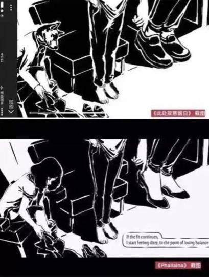然而这个创意十足的作品今天上午被拔出来,与法国一个叫PHALLAINA的APP神一般的相似,不,超过了相似的界限,其实作品只是把原作品中的法语换成中文,原作品中女性的头换成了一只狗的形象,下面是截屏对比,大家感受一下。
