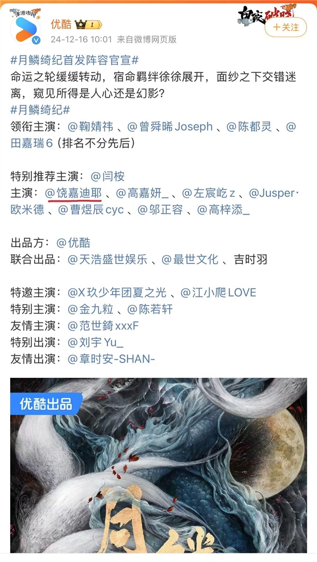 饶嘉迪作为00后的新生力量,在众多试镜者中脱颖而出,获得郭敬明的青睐。她在《月鳞绮纪》中的角色充满了挑战与魅力。对于饶嘉迪来说,这是一个难得的机会,也是巨大的考验。在片场,她全身心地投入到角色的塑造中,努力理解角色的内心世界,力求将女二号演绎得生动而富有层次。