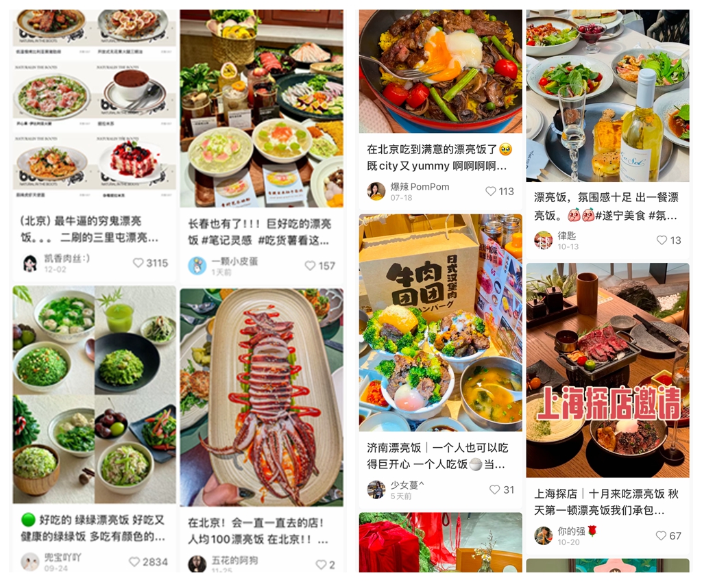 典型案例莫过于“漂亮饭”,顾名思义指“颜值”很高的正餐。