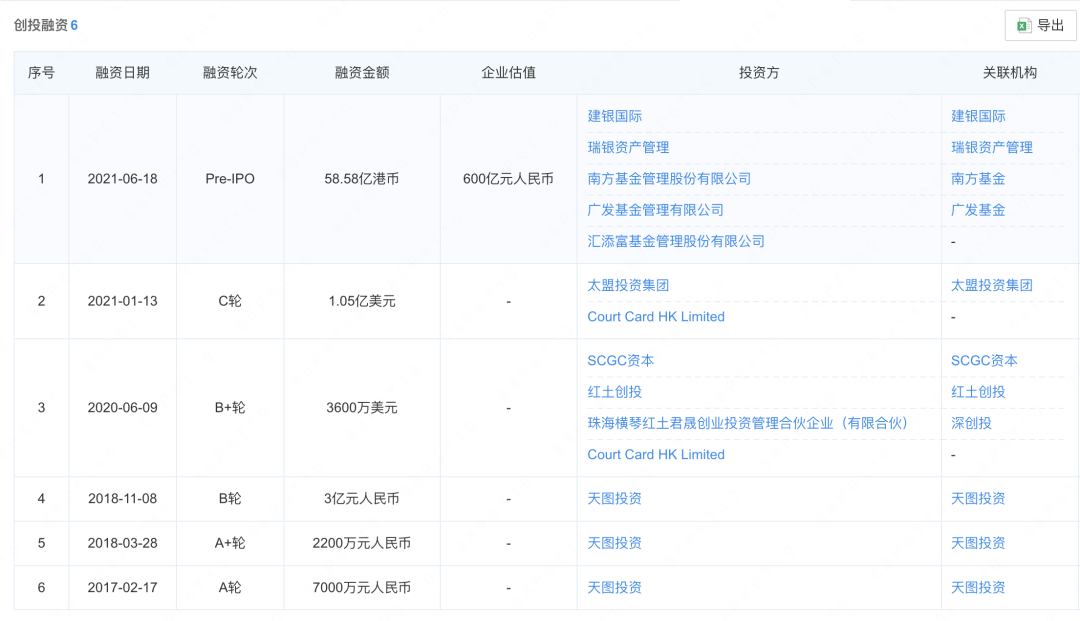 而比茶颜悦色晚2年成立的奈雪的茶,其在抢跑上市之前,也经历了6轮融资,包括2017年、2018年天图投资参与A轮、A+轮和B轮融资,累计投入的3.92亿元人民币;2020年由SCGC资本、红土创投深创投等机构投资的3600万美元B+轮融资;2021年太盟投资集团的1亿美元C轮融资,以及上市前夕,多家机构参与的总额达58.58亿港币的Pre-IPO融资。