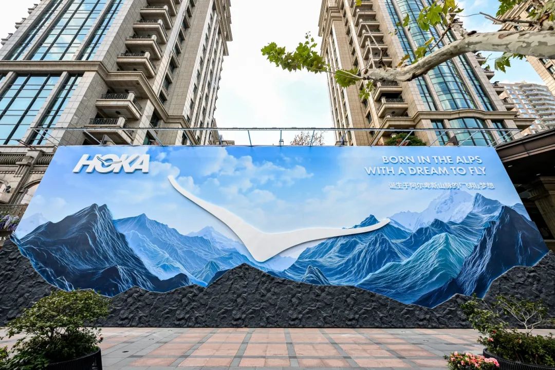 近日,国际高性能鞋服品牌HOKA ONE ONE 全新门店围挡亮相上海新天地,重述山脉起源,突破运动边界,让人即使身处繁华喧嚣的都市商圈,也能感受到飞跃于山野之间的自由气息。