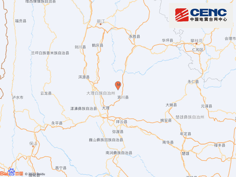 云南大理州宾川县发生3.8级地震,震源深度10千米