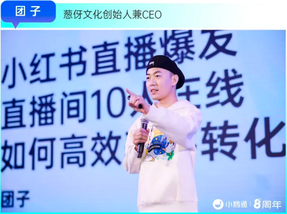 团子老师是小鹅通石家庄商家社群的主咖教练,从业新媒体行业8年,成功孵化过400多位艺术行业博主。在会上,他分享了如何在小红书平台上高效获客和转化的经验。