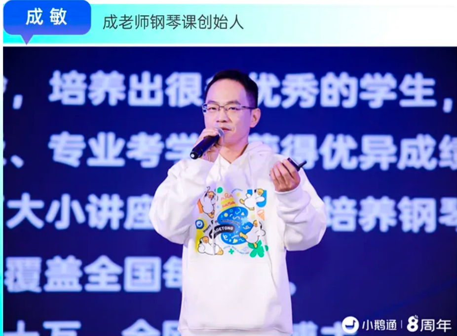 成敏老师有着近 30 年钢琴教龄,2012 年起开展线下钢琴老师师资培训,直播兴起后开始尝试线上授课,在小鹅通的帮助下业务量增长,退课率仅 5% 左右,四人团队能服务近十万客户。