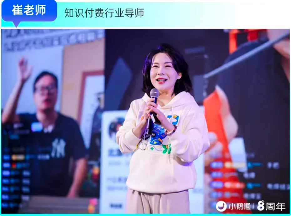 崔老师还强调了工具、模式和内容的重要性,三者相结合就是实现稳定盈利的关键。小鹅通就是她知识IP教学的最佳阵地,崔老师常使用小鹅通功能实现销售精准分发、课程打卡等环节,以提高销售效率和用户体验。她鼓励知识IP要有长期主义的思维,不断更新自己的产品和课程,以适应不断变化的市场需求。