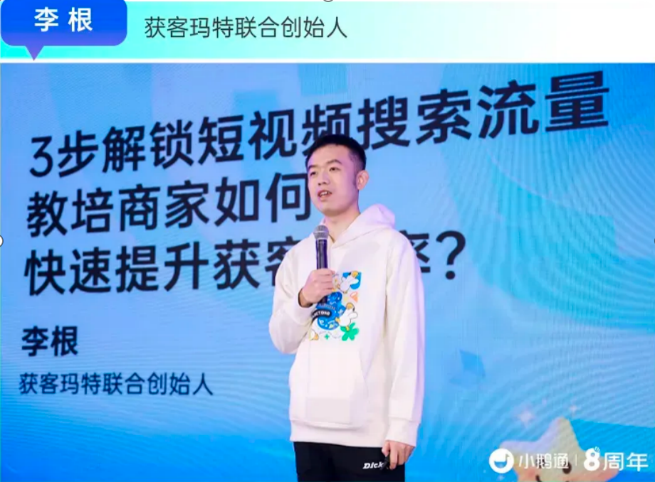 作为小鹅通本地社群教练代表,李根老师主要分享如何通过短视频搜索流量,来提升整体线上获客成效。